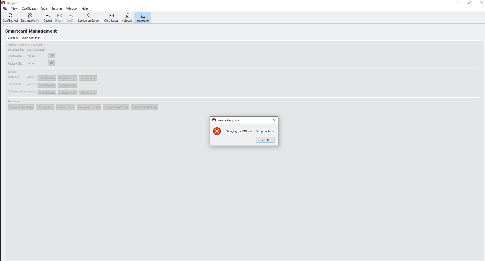 I have already tested Kleopatra on Windows 10 Pro. The error image I shared earlier was captured from that application. It displays the same error as GPG on Ubuntu.