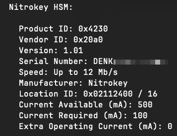 P:57436; T:0x8637391424 13:24:49.100 [opensc-tool] reader-pcsc.c:364:refresh_attributes: Nitrokey Nitrokey HSM check