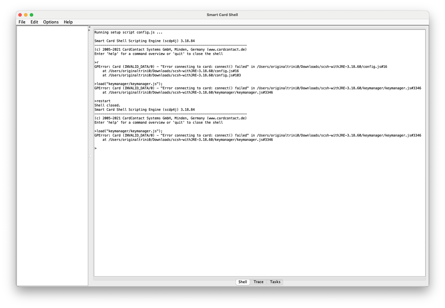 P:57436; T:0x8637391424 13:24:49.085 [opensc-tool] ctx.c:983:sc_context_create: Configured for opensc-tool (/Library/OpenSC/bin/opensc-tool)