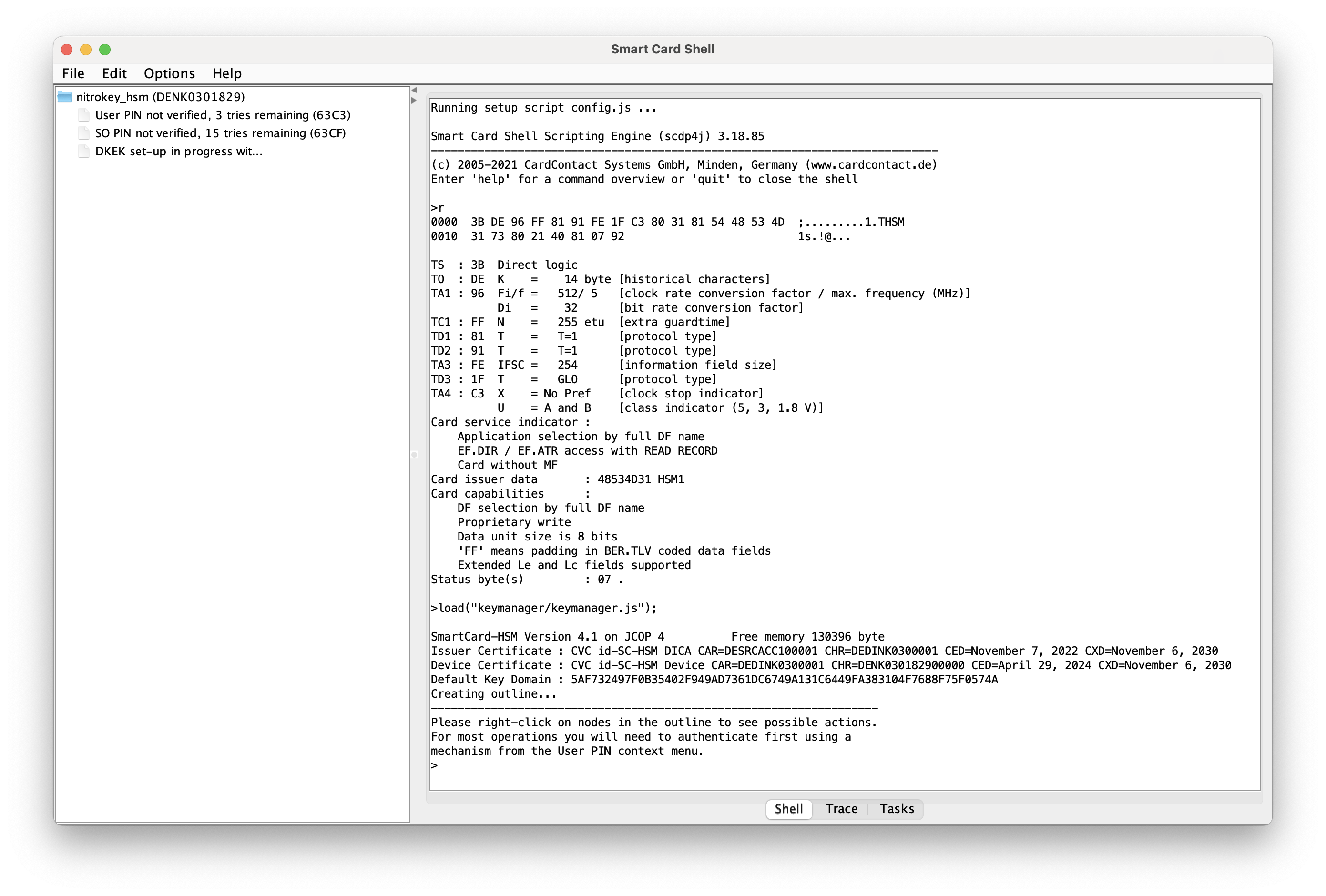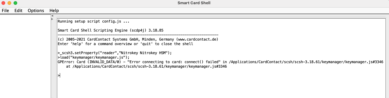 I have been using the Nitrokey HSM 2 in Linux headless environments without issue. I want to create multiple key domains and saw that it is recommended to use the SmartCard shell to set this up.
